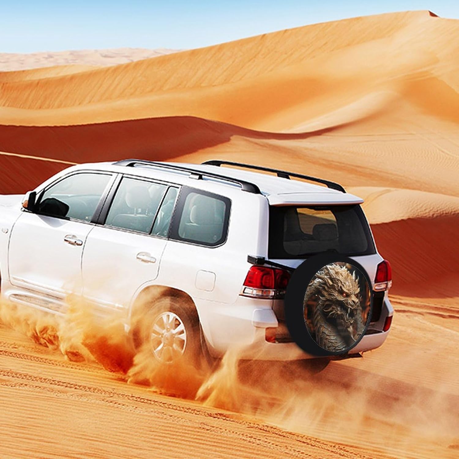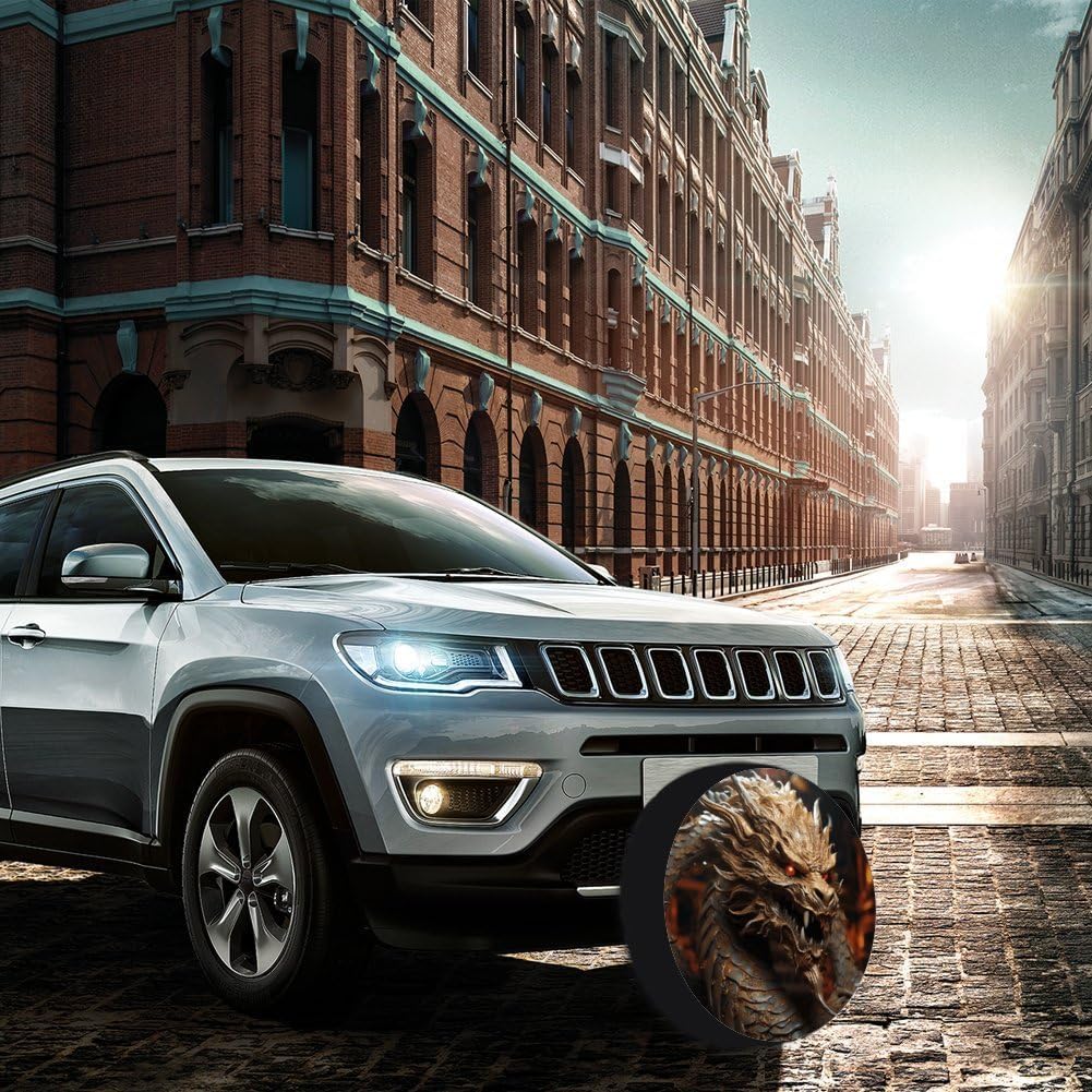 This Golden Dragon on Red Background printed spare tire cover is made of thickened leather, providing comprehensive and superior protection for your spare tire. It effectively blocks water, snow, sunlight, and dust from damaging the tire. It prevents the tire rubber from cracking, fading, and aging due to prolonged outdoor exposure, thus significantly extending the life of your spare tireThis camper spare tire cover features an adjustable polyester drawstring design. You can freely adjust the tightness of the drawstring to accommodate spare tires of different diameters, ensuring that the spare tire cover fits snugly around the tire and will not slip off or be blown away even in strong windsThis fashionable wheel protector uses advanced UV printing technology. The vivid and clear pattern adheres firmly to the leather surface, remaining bright and vibrant even after months of outdoor use. The leather texture enhances the overall look of your Jeep, RV, SUV, or trailer, protecting the spare tire while adding a personalized touch of style to your vehicleThis Leather tire cover is designed for ultimate convenience, requiring no additional tools for installation and removal. Simply tighten the polyester drawstring in seconds to secure the cover to the spare tire; when you need to use the spare tire, simply release the drawstring to quickly remove it, saving you time and effort in your daily useThis universal tire cover is compatible with 28"-34" spare tires, fitting most popular vehicles including Jeep, trailer, RV, SUV and off-road vehicles. It’s a versatile tire protection accessory for all your outdoor activities—whether you’re going camping, road tripping, or just parking your vehicle outdoors at home, this cover provides reliable protection for your spare tire.