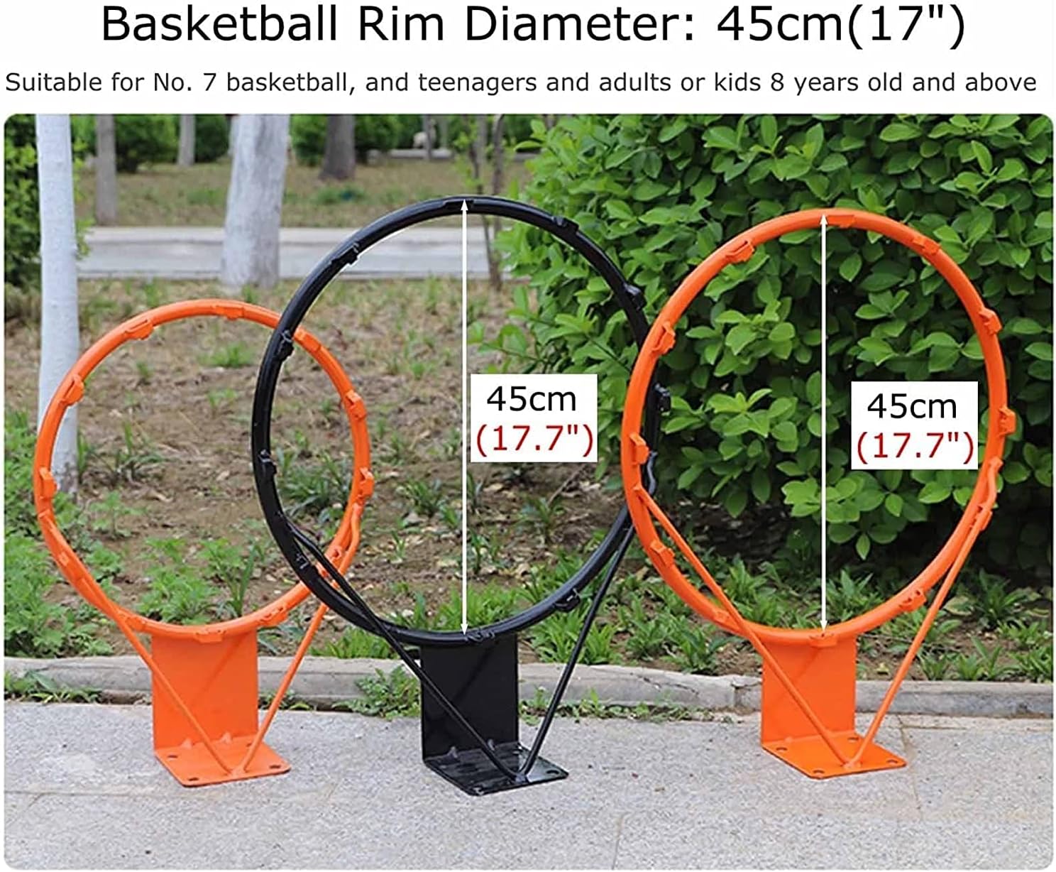 Product parametersMaterial: Steel Ring + All-weather Basketball NetDiameter: 45cm(17")Product weight: 2 kg. Package Includes:1 x Basketball Hoop (Assembly)