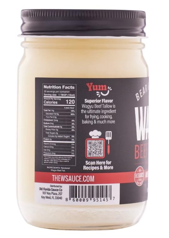 Bear & Burton's Beef Tallow, Wagyu Referred to as "liquid gold" by competition pitmasters and professional chefs worldwide - beef tallow is a fancy name for rendered beef fat. While it sounds simple, as anyone who has ever done this process themselves knows...its not easy to source. Use Bear & Burton's x RC Ranch Wagyu Tallow like you would traditional butter or high-temp oils. Clean burning & naturally sourced - our tallow offers exceptional versatility in the kitchen. So whether you are seeking the perfect homemade french fries to rival a certain set of arches, looking to take your baking to the next level (use as a substitute for butter in most recipes), or trying to achieve the perfect crust on steak night - Bear & Burton's x RC Ranch Wagyu Beef Tallow is ready to transform your tastebuds.