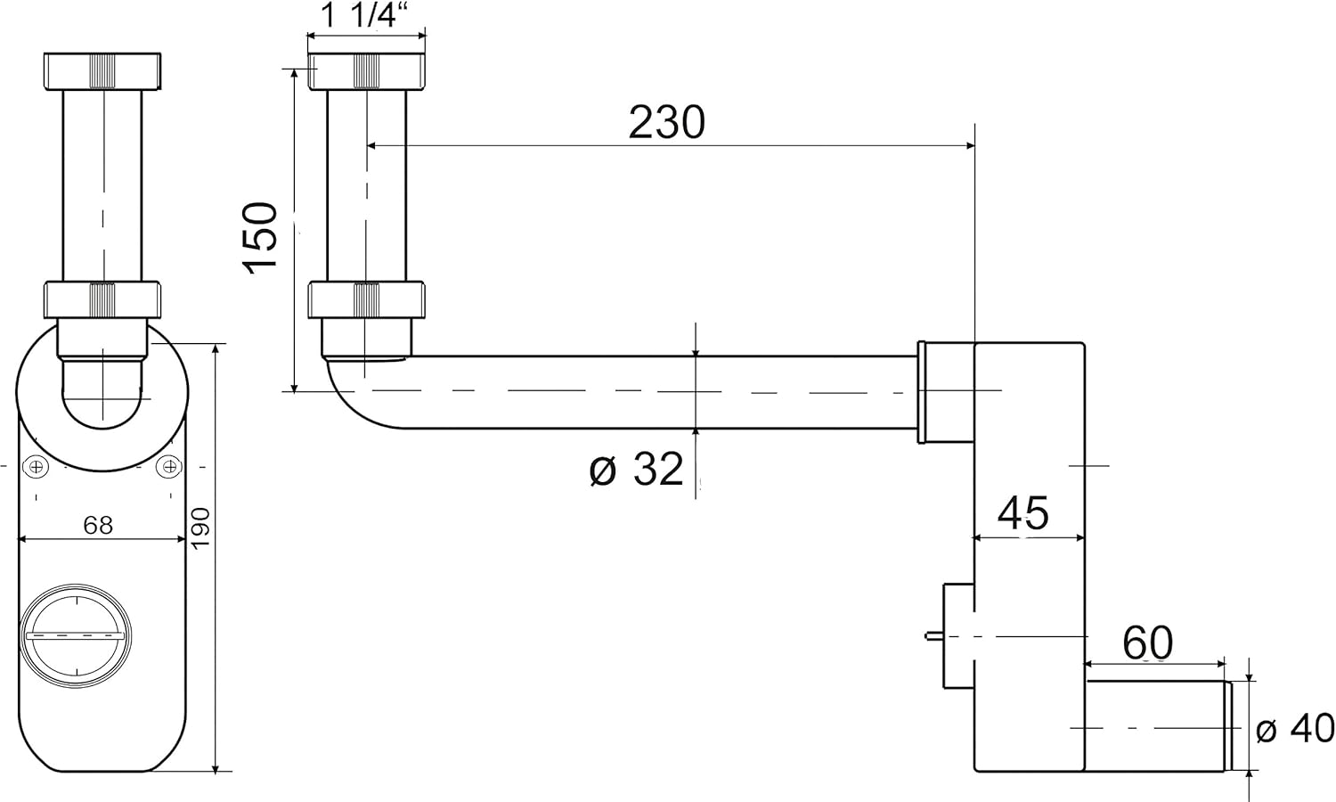 Wash stand space saving odour trap• Surface-mounted odour seal• Space-saving wall connection pipe• Including mounting screws• Certification mark: DIN 4 U 045• 1 1/4" x Ø 40 mmCORNAT accessories CORNAT bathroom accessories meet all applicable DIN standards and, when professionally installed, ensure that all the elements of your bathroom function safely and dependably.