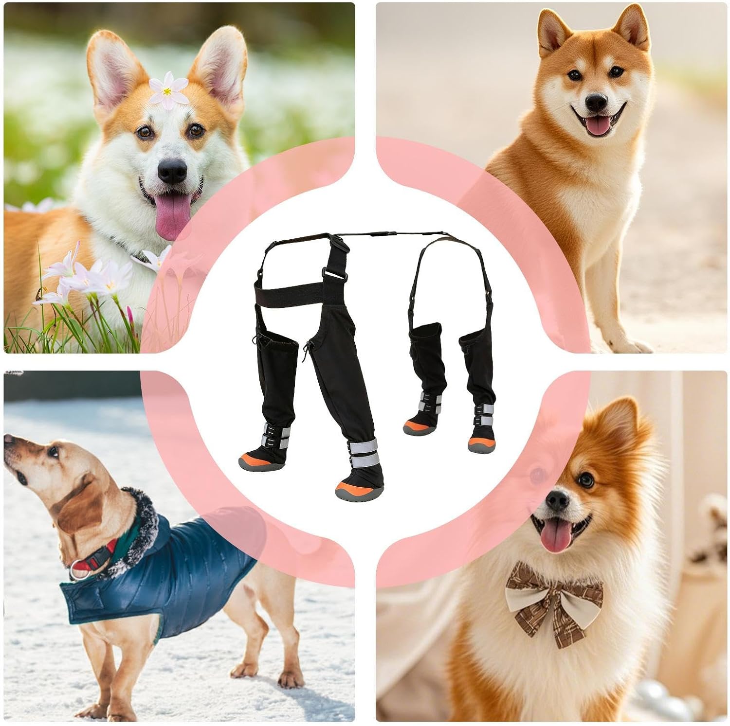Dog boots are important for protecting your pet's paws during outdoor activities in various weather conditions. These waterproof shoes ensure your puppy or adult dog stays comfortable while walking across wet, snowy, or cold surfaces. The adjustable design provides a secure fit to prevent slipping off, making them ideal for rain, snow, and winter use. Featuring anti-slip soles, these boots offer stability upon slippery terrains, ensuring safety during walks. With reflective strips integrated into the design, visibility is enhanced during low-light conditions, keeping your pets safe at night. As an effective protector against dirt, mud, and harsh elements, these dog boots also help maintain cleanliness indoors by minimizing tracked messes. Whether it's for outdoor adventures or simply strolling through the neighborhood, these versatile dog shoes provide reliable protection and comfort for your beloved pets in any season.SpecificationMaterial: rubber+ABS+cottonProduct specifications: M, L, XL, 2XLProduct weight: 248g, 282g, 329g, 364gApplicable objects: dogs, it is recommended to purchase according to the size chartList1 set*dog suspender bootsNote: Please be sure to measure your dog's paw size before purchasing to ensure a proper fit.1. Due to lighting effects and display angles, there may be color differences in the product.2. Due to manual measurement, there may be errors in product size, please understand.