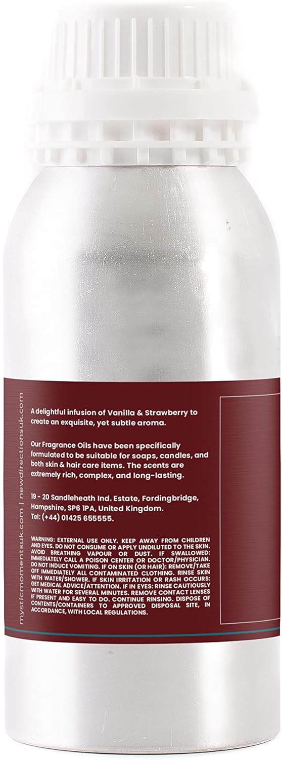 Vanilla & Strawberry Fragrance Oil - 1KgDescription: A delightful infusion of Vanilla & Strawberry to create an exquisite, yet subtle aroma.Our Fragrance Oils are specifically formulated to be suitable for soaps, candles, and both skin and hair care items. The scents are extremely rich, complex, and long-lasting.What does this mean to you? It means that Mystic Moments Fragrance Oils are premium products perfect for those who will not compromise on quality.Please note that Fragrance Oils are completely synthetic, and they should not be confused with Natural Essential Oils.Important Note: The information provided is for educational purposes only.As with any manufacturing process, Mystic Moments encourages small, lab-scale manufacturing for evaluation purposes prior to full commercial manufacturing.