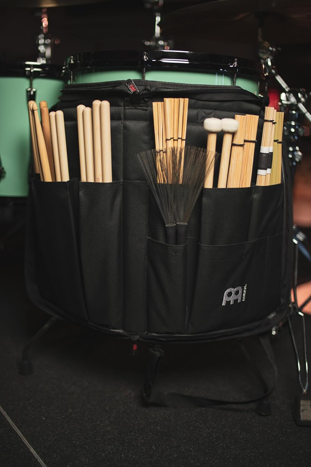 | Included Components | Multiple internal pockets for drumsticks, brushes, mallets, multi-rods, spare parts, and tools; one extra-large external pocket; removable, adjustable length torso body sling; two reinforced carrying handles; floor tom hooks. |