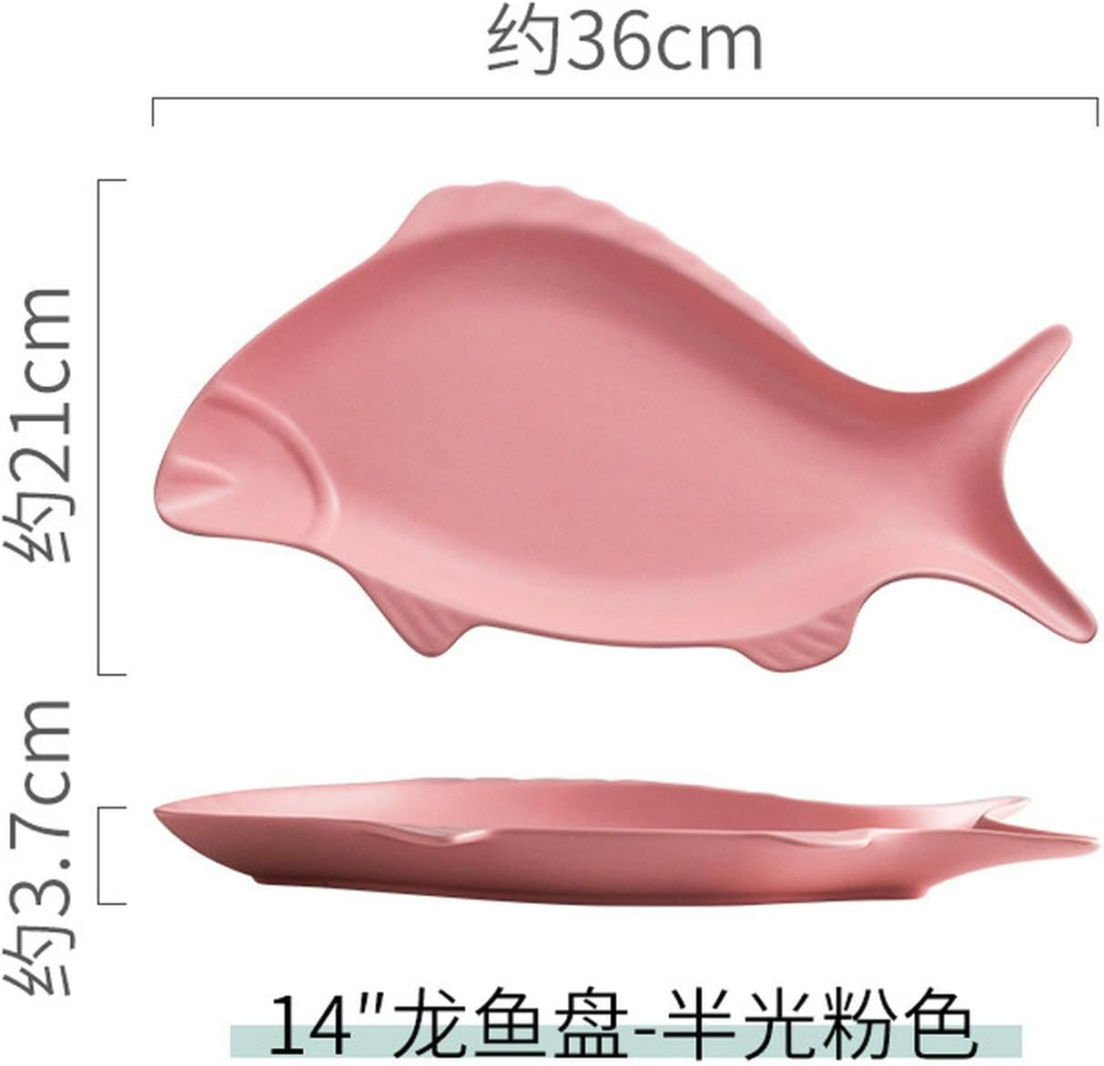 Product Category: Fish PlateMaterial: PorcelainColor: 14 inch semi-gloss black, 14 inch semi-gloss red, 14 inch semi-gloss green, 14 inch semi-gloss white, 14 inch semi-gloss pink, 14 inch semi-gloss blue, 16 inch semi-gloss black, 16 inch semi-gloss red, 16 inch semi-gloss green, 16 inch semi-gloss white, 16 inch semi-gloss pink, 16 inch semi-gloss blue