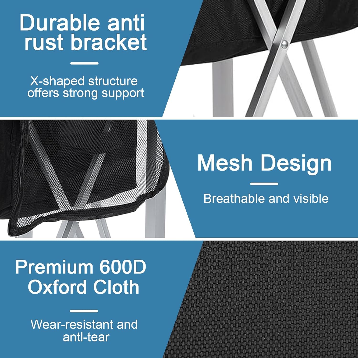 Description:Large Capacity: This tennis cart with large capacity bag holds up to 160 tennis balls. It has two side pockets for cell phones, keys and other items. The double zipper design makes it easy to open the tennis cover.Detachable Design: The tennis cart comes with a removable ball bag that can be used with the frame or on its own. With the ball bag removed, the frame of this tennis cart folds down easily and is compact and tool-free.Durable Structure: Made of sturdy, rust-resistant aluminum tubing, the tennis ball hopper with wheels ensures 66 lbs. of weight capacity and durability. In addition, the basket is made of high-quality fabric that is abrasion and tear resistant.Lockable Wheels: Equipped with 4 universal wheels, this sports teaching cart allows you to move around with ease. In addition, 2 of the wheels are equipped with brakes to lock the cart in place.Wide Application: This multipurpose tennis ball hopper can hold and store a variety of balls, such as badminton, baseball, table tennis, pickleball, squash, etc. It will be a perfect gift for tennis or other ball sports lovers. Item Name: Tennis Ball Cart Material: Non-woven FabricFeatures: with Wheels, Lightweight, Removable Bag Size Details:L: 90cm/35.43", W: 40.5cm/15.94", H: 40.5cm/15.94" (Approx.)Notes:Due to the light and screen setting difference, the item's color may be slightly different from the pictures.Please allow slight dimension difference due to different manual measurement.Package Includes:1 Set of Tennis Ball Cart