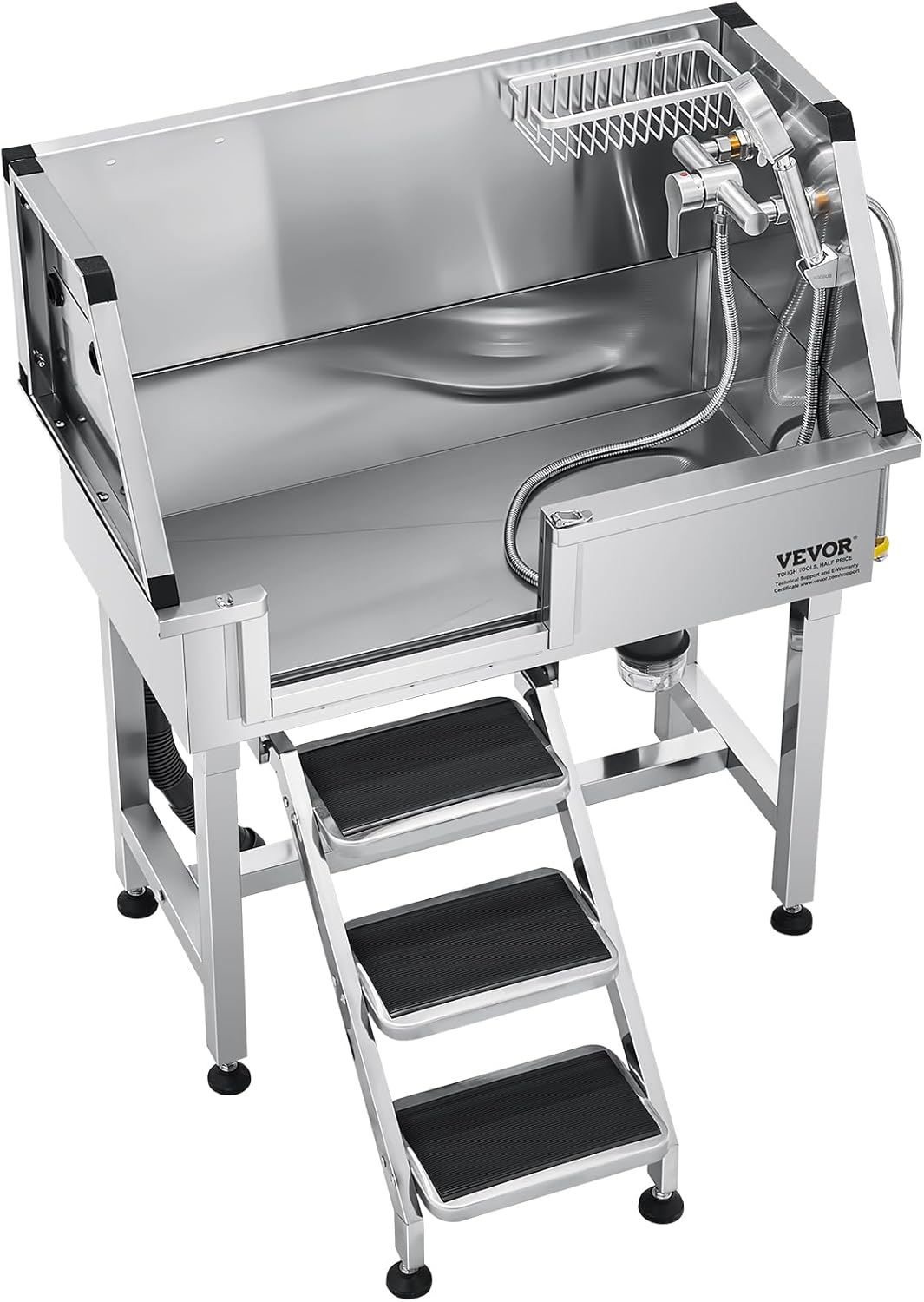 | Directions | With seamless one-piece welding and built-in sealing strips, this tub ensures no water leakage. Made from stainless steel, it is rust-resistant and sturdy, maintaining its new look over time. The tub features smooth edges, ensuring security for both pets and users during bathing. |