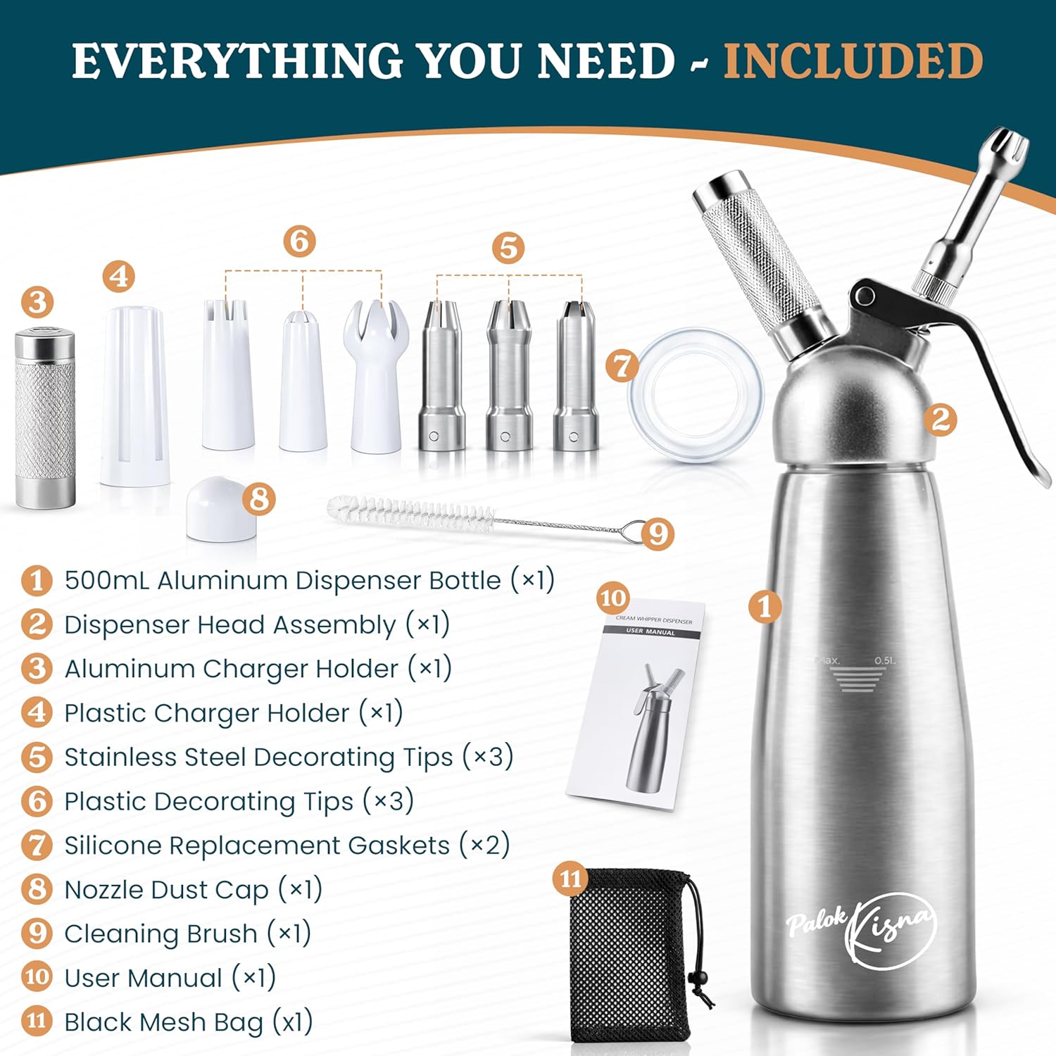 | Included Components | Whipped Cream Dispenser |