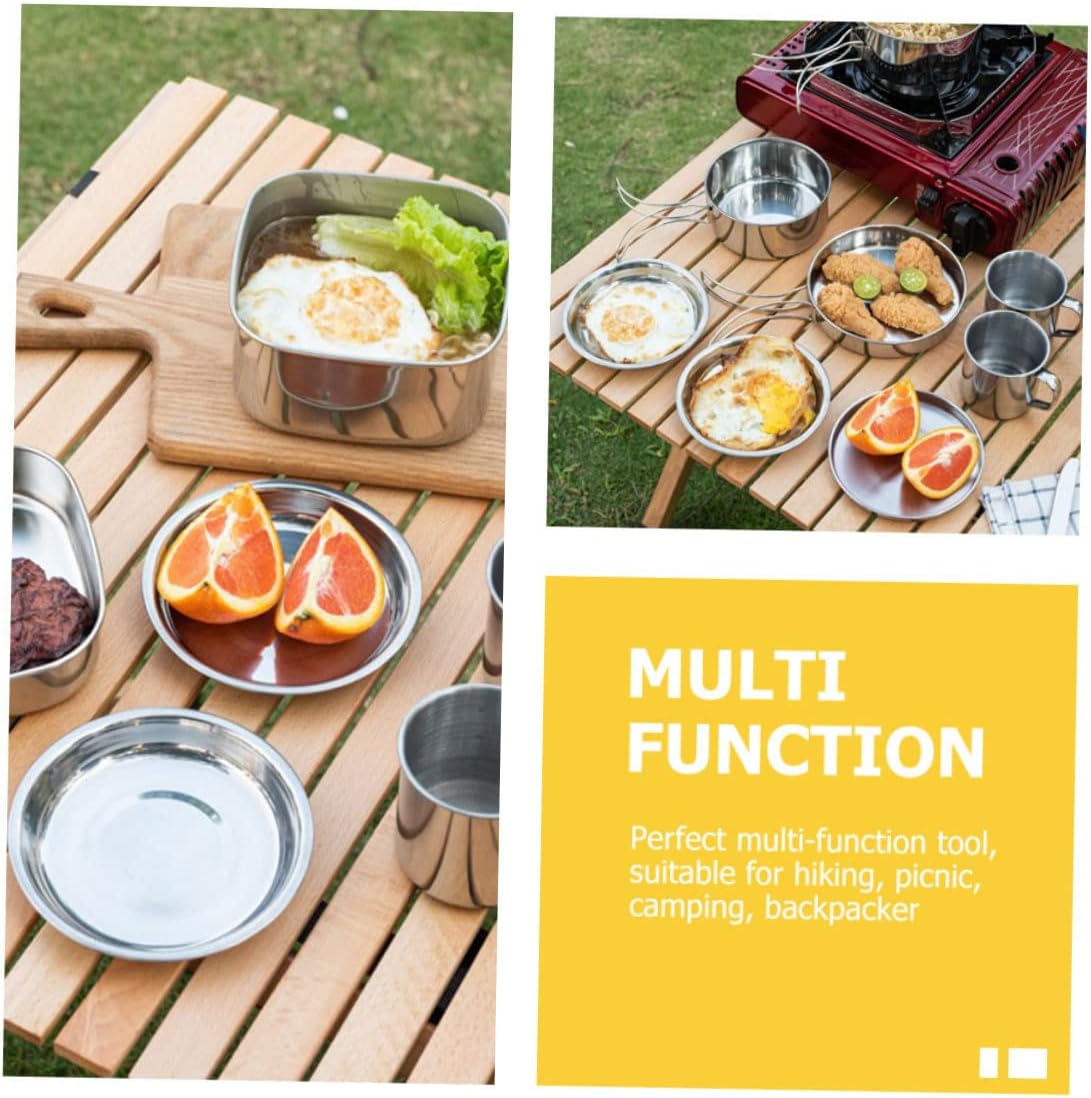 Package List 1 × Stew Pot 1 × Frying Pan 2 × Plates 2 × Cups Characteristics -Size:7.50X7.50X7.00cm/2.95X2.95X2.75in (Cup) combined cookware -Size:13.70X13.70X2.00cm/5.38X5.38X0.79in (Plate) camping accessories -Color:Silver picnic cookware kit -Material:Stainless steel camping cooking set -Size:14.20X14.20X7.00cm/5.58X5.58X2.75in (Skillet) long handle camping pan -Size:15.20X15.20X4.00cm/5.97X5.97X1.57in (Frying Pan) camping cooking pan kit - This set of and professional camping cookware can be a your friends who love camping outdoor cookware. - Made of stainless steel, these cookwares are , fast heating, for outdoor use camping cooking equipment. - This camping cookware is light and compact, compact and lightweight, convenient to carry travel picnic cookware. - They have a wide occasion, suitable for outdoor activities like camping, hiking, backpacking, etc stainless steel cookware kit. - This set contains cups, plates, frying pan and stew pot, which can meet your needs portable cook combinations.Goods Informationportable cooking kit For outdoor activities like camping, hiking, backpacking, etc.combined cookware With lightweight and overlapping design, they are convenient for you to carry outside.camping accessories This set contains cups, plates, frying pan and stew pot, which can meet your needs.camping cooking pan kit Adoption of , the camping cookware is and to use