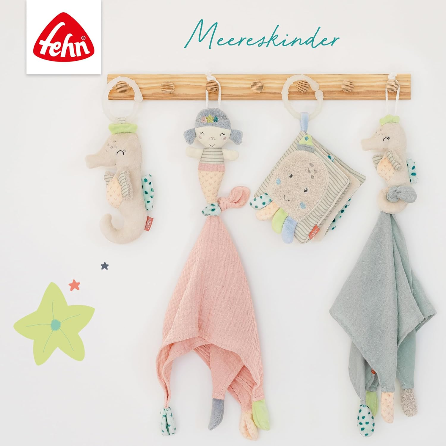 Fehn Fabric Book with Rattle and Hanger 11 x 11 cm Sea Children Octopus 054415