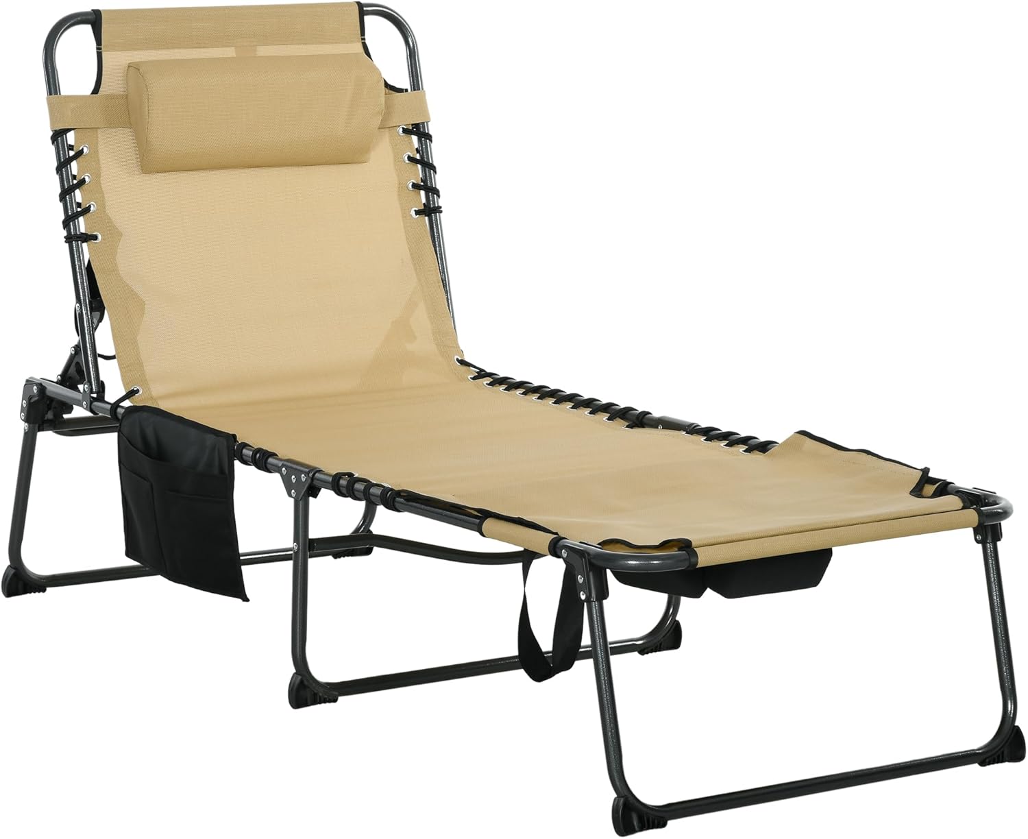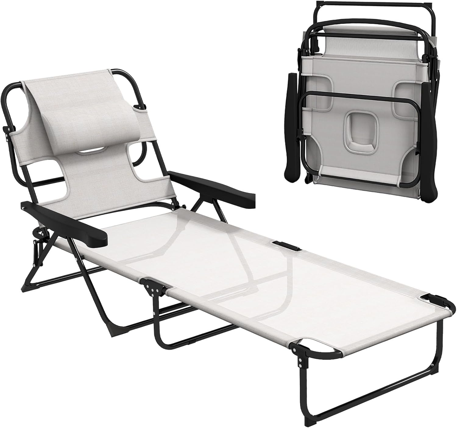 Ultimate Comfort for Outdoor RelaxationUpgrade your lounging experience with our 5-Level Adjustable Reclining Chaise Lounge, designed for ultimate comfort whether you're sunbathing, reading, or napping outdoors. Its ergonomic design and premium materials ensure you stay cool, supported, and relaxed—perfect for the beach, poolside, patio, or backyard.Key Features & Benefits✔ 5-Level Reclining Back with Face HoleAdjust the backrest to 5 different angles for sitting upright, lounging, or lying flat. The built-in face hole allows comfortable breathing and easy reading while lying face down—ideal for sunbathers and book lovers!✔ Breathable Mesh & Bungee SuspensionThe high-airflow mesh fabric keeps you cool under the sun, while the bungee suspension system provides flexible, low-pressure support. No more sinking or discomfort—just perfect relaxation.✔ Plush Headrest & Side Storage PocketEnjoy added comfort with the soft padded headrest, reducing neck strain during long lounging sessions. The convenient side pocket keeps your phone, sunscreen, or book within easy reach.✔ Foldable & Space-Saving DesignThe tri-fold frame makes storage and transport effortless—fits in car trunks, closets, or garages. Take it anywhere for instant relaxation on the go!✔ Durable & Weather-Resistant BuildConstructed with a heavy-duty steel frame and waterproof powder coating, this chair resists rust, fading, and wear. The UV-resistant mesh ensures long-lasting durability under sun exposure.Perfect For:☀ Beach & Poolside Lounging📖 Reading or Sunbathing Face Down🌿 Backyard, Patio, or Camping TripsWhy Choose This Lounge Chair?✅ Adjustable & Ergonomic – Tailor your comfort with 5 reclining positions.✅ Portable & Compact – Folds easily for storage and travel.✅ Built to Last – Sturdy construction withstands outdoor elements.✅ Thoughtful Design – Face hole, breathable mesh, and storage for convenience.