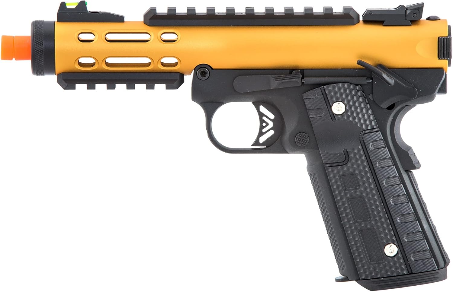 Specifications: Operation:Gas Blowback (Green Gas) Firing Modes:Semi-Automatic, Safe Muzzle Velocity:300 - 320 FPS (w/ 0.20g BBs) Magazine Capacity:16 Rounds (Compatible with most 1911 single stack magazines) Hop-Up:Yes, Adjustable Length:8.6 inches Weight:1.5 lbs