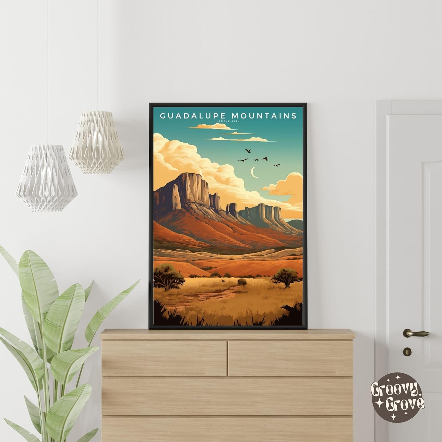 Transform your living space with the timeless beauty of Guadalupe Mountains National Park through our abstract nature landscape poster. This unframed wall art captures the awe-inspiring grandeur of one of America’s most iconic national parks, bringing a touch of serenity and elegance to your home decor. Perfect for any room, this poster is designed to complement a variety of interior styles, whether it's hanging in your office, bedroom, bathroom, or living room.Crafted on premium archival paper, this print boasts vivid, fade-resistant colors that ensure the artwork remains as captivating as the day it arrives. The abstract design, combined with a harmonious color palette, makes it a versatile piece that enhances the aesthetic appeal of any space. Whether you're a nature enthusiast, an art lover, or someone looking to add a peaceful vibe to your home, this poster is the perfect choice.Our Guadalupe Mountains National Park poster also makes an exceptional gift. Whether for birthdays, Christmas, New Year, housewarmings, anniversaries, holidays, or special occasions, it’s a thoughtful present that reflects the recipient's love for nature and adventure. At GroovyGrove, we ensure every print meets the highest quality standards, providing you with a product that brings lasting beauty and inspiration into your life. Elevate your space with this stunning tribute to one of the world’s most breathtaking landscapes.