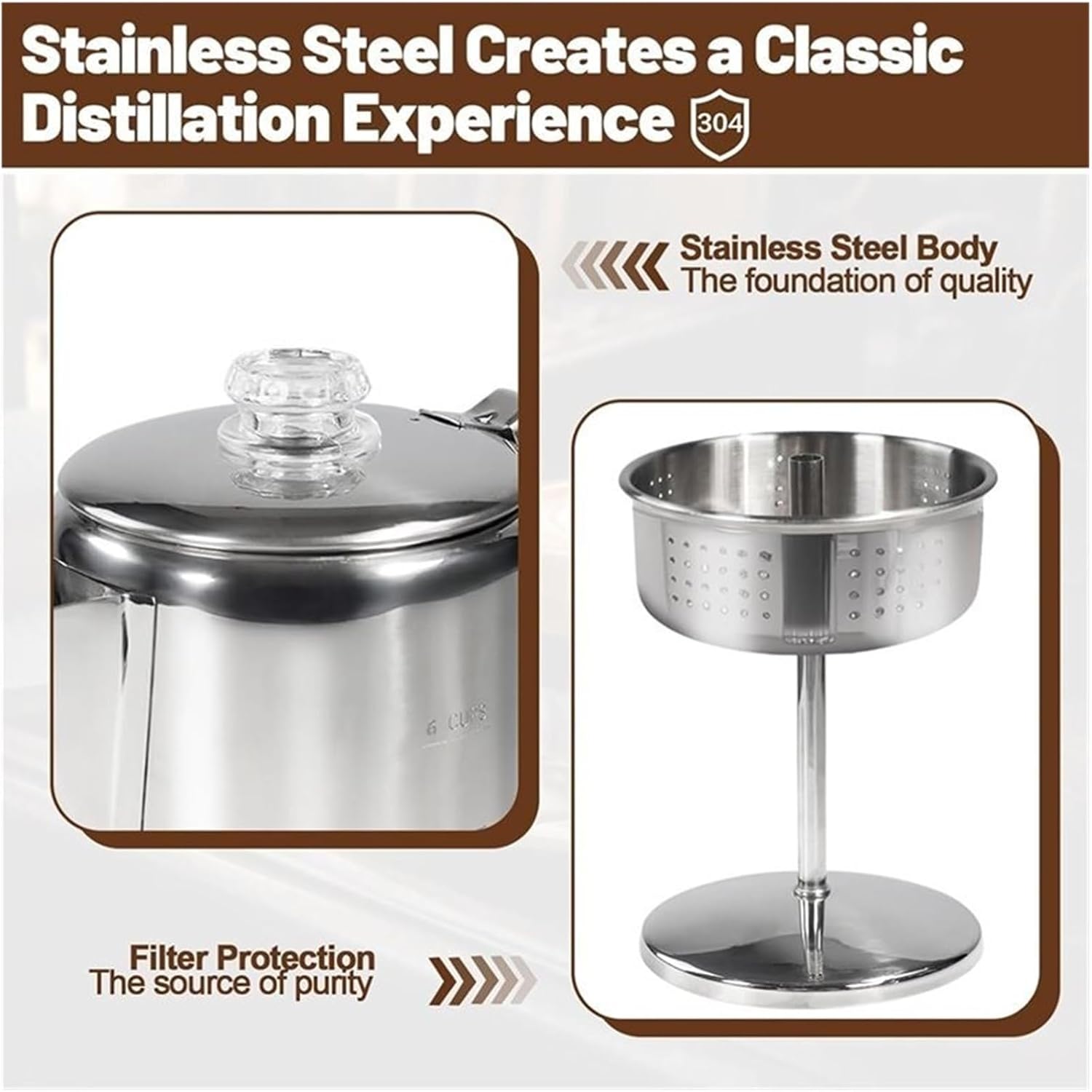 Color: SilverMaterial: 304 Stainless SteelPackage Contents:1*coffee potOnly the above package content, other products are not included.Note: Light reflection and different displays may cause the color of the item in the picture a little different from the real thing. The measurement allowed error is +/- 1-3cm.Welcome to our store. Your support is the driving force for our progress. We will strive to do even better.