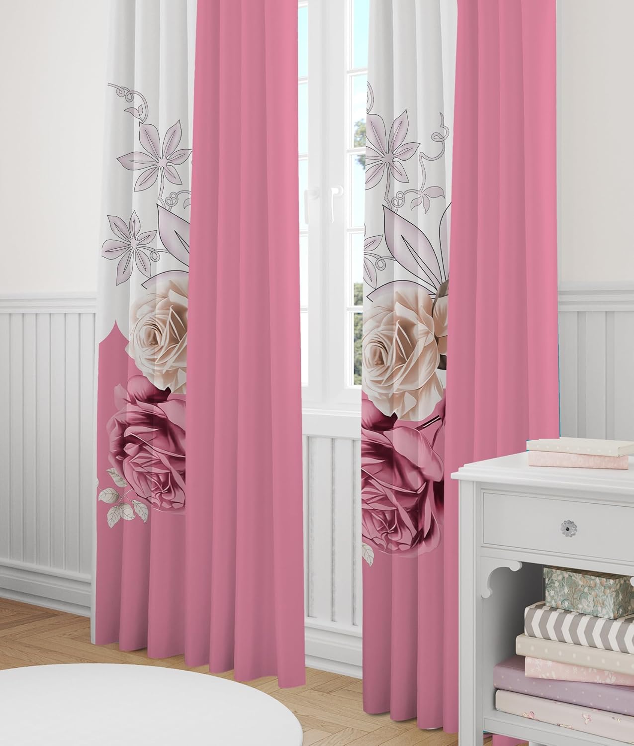 Introducing our Reylox Pink Rose Floral Curtains with Grommets, a 6 - piece set that includes 2 print curtains and 4 solid pink curtains, each measuring 38"x84". These curtains are designed to be a fantastic addition to your home, whether you're looking for rose curtains for bedroom, elegant curtains for living room, or decorative curtains for any space.The elegant pink rose floral pattern on the print curtains, combined with the solid pink curtains, gives these patterned curtains a unique and romantic look. They are excellent decorative curtains that can enhance the aesthetic of any living space, from bedrooms to living rooms. Crafted from premium fabric, these printed and solid pink curtains are not only skin - friendly but also effective at softening the light that enters your room while protecting your privacy, creating a comfortable environment.With grommets, these curtains with grommets are easy to hang and slide effortlessly, making daily use convenient. A key advantage is that they are machine washable – simply wash them in cold water, and they'll keep their vibrant appearance, ensuring easy maintenance.Versatility is another highlight. They are suitable for various settings such as bedrooms, living rooms, dining rooms, guest rooms, and hotels. Whether you need rose curtains for living room, elegant curtains, or just decorative curtains to spruce up your space, this set can meet your needs. Before purchasing, remember to measure your window size and refer to the size chart to ensure a perfect fit. Transform your home with these beautiful, functional, and machine - washable curtains today!