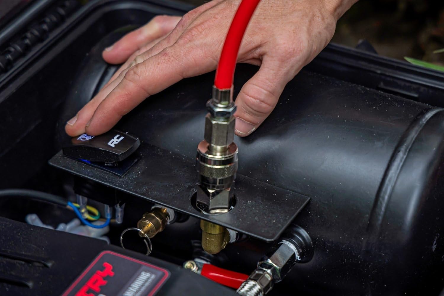 For any off-roader or Overlander, having a reliable air compressor is essential. Introducing Rough Country's 12V Twin Motor Air Compressor with Overland Case – your go-to solution for hassle-free inflation during any outdoor adventure. This portable powerhouse is packed with user-friendly features for trouble-free inflation of any kind.Powerful and Compact: Compact 12V twin motor design makes this the most efficient and high-flowing portable compressor of its size on the market at 6.16CFM. Enough power and flow to inflate a 35" tire from 0-40 psi in 2-3 minutes!Quick Hassle-Free Inflation: Featuring a quick connect coupling makes filling up tires or inflatable gear a walk in the park. No more wrestling with complicated setups!High-Pressure Power: A 150 PSI air tank that has the muscle to handle all your inflation jobs, from tires, rafts, or even air tools.Precise Control: Included air chuck with 0-220lb built-in pressure gauge with thumb trigger and bleed-off valve allows maximum accuracy when airing up.Rugged Waterproof Carry Case: Keep everything safe and dry in the waterproof lockable hard case equipped with an equalizer valve. It even has a storage compartment to keep your accessories organized and ready to roll. High-Performance Motor: Ducted IP55 sealed brushed DC cooling fan and anodized aluminum motor mounts keep this unit running cool and continuous with a 100% duty cycle.Make your outdoor experiences hassle-free with Rough Country's Twin Motor Air Compressor and Overland Case. This reliable and compact compressor ensures effortless inflation and deflation, giving you the freedom to focus on your adventures, not your equipment.